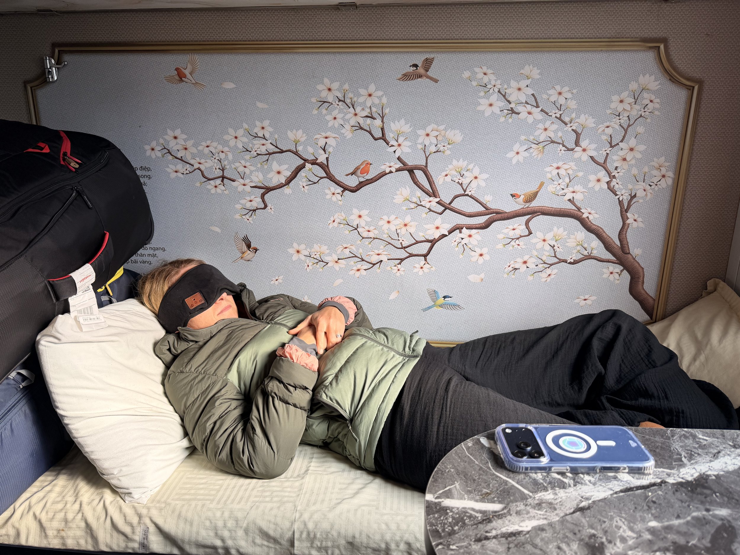 The six hours went surprisingly quickly. Kia and I sat facing each other, talking about the trip so far, ideas for when we’re back in Australia, life stuff, nothing urgent. Just talking. Outside, the landscape shifted from hills near Da Nang to flat farmland stretching all the way north.