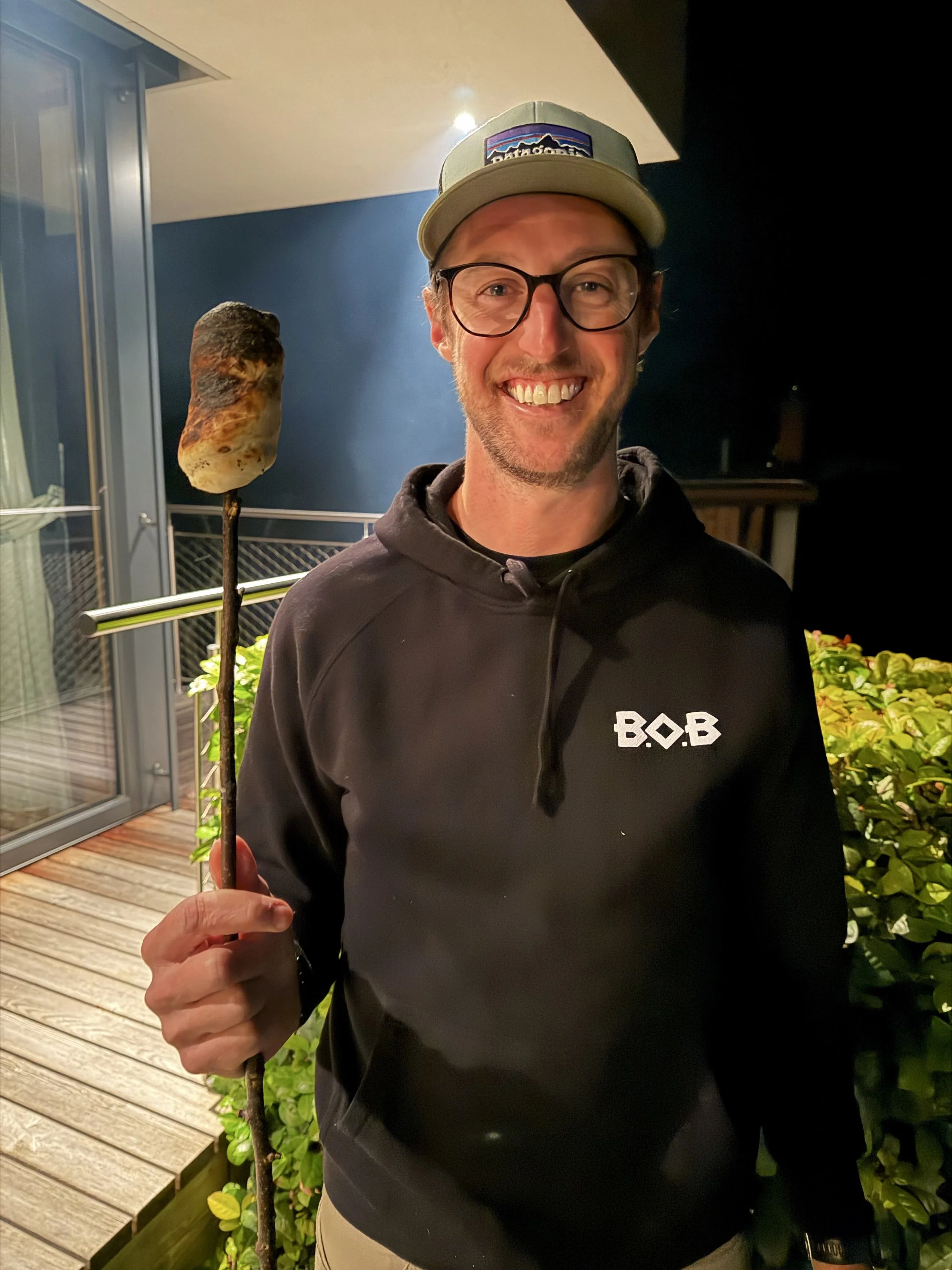 This wasn’t your typical Aussie backyard setup. This was open fire cooking. Long sticks. Raw sausages. You hold them over the flames and slowly cook them, turning them carefully. Once cooked, you wrap the sausage in dough and cook that over the fire as well until it goes golden and crispy.